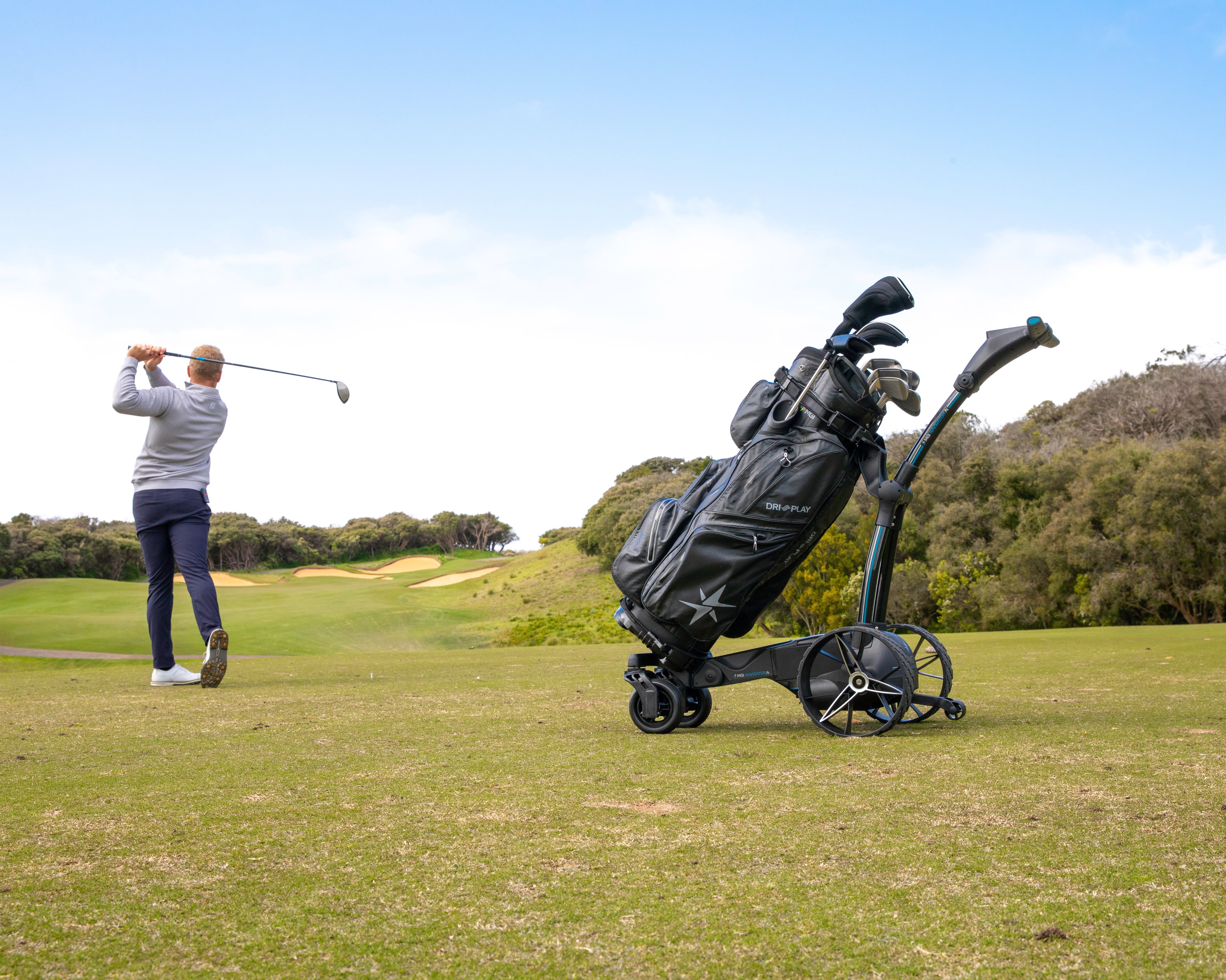 The Ai Navigator GPS+ also comes with a full directional handheld remote, allowing you control the buggy from over 110 yards away, giving you the freedom to walk the course without restriction.