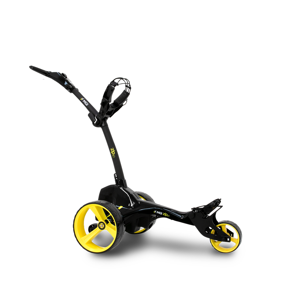 Introducing the MGI Zip X1 - A new standard in electric golf caddies. Showcasing a sleek, seductive matte black gloss design and featuring a striking gloss top box, the Zip X1 combines aesthetics with exceptional performance.